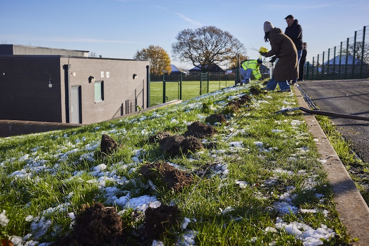 This year, the school is focused on more tree planting and the creation of a wildflower meadow. In November, on a morning marked by hard frost and biting cold, the Red Kite Rewilding team wondered if their day’s plans would be possible. But 11 volunteers from ENGIE arrived, undeterred by the weather, and worked tirelessly for four and a half hours. Their dedication was matched by Ting Zhu, a regular volunteer with the Red Kite Rewilding Initiative, who brought along her two teenage sons. Together, this group planted around 200 new trees and created a wildflower area.